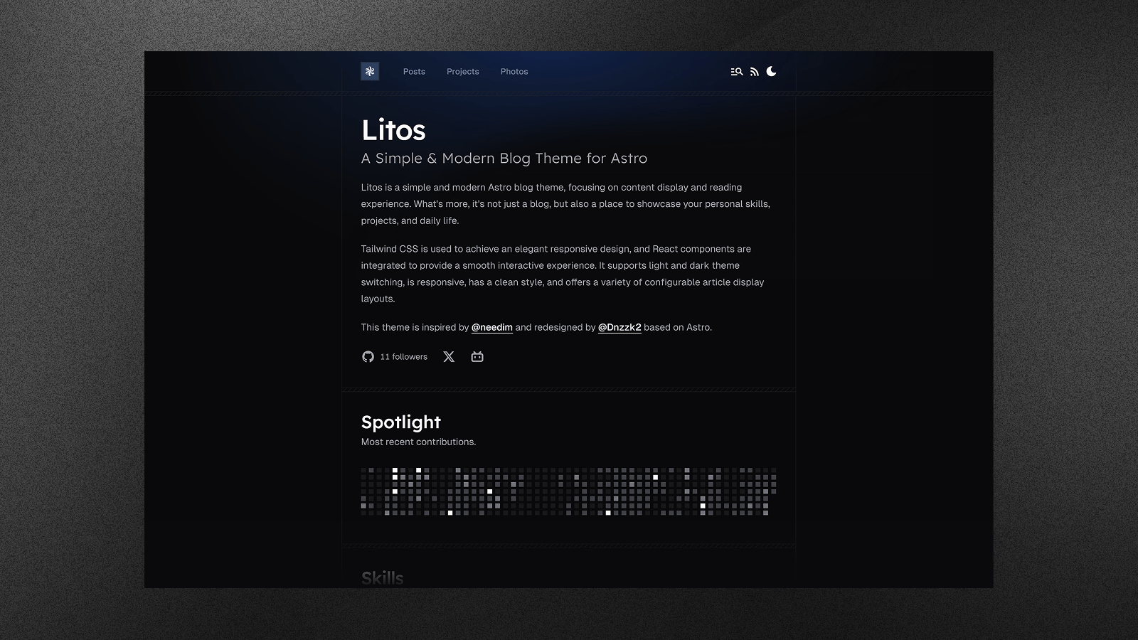 Litos is a modern, high-performance blog theme built on Astro.